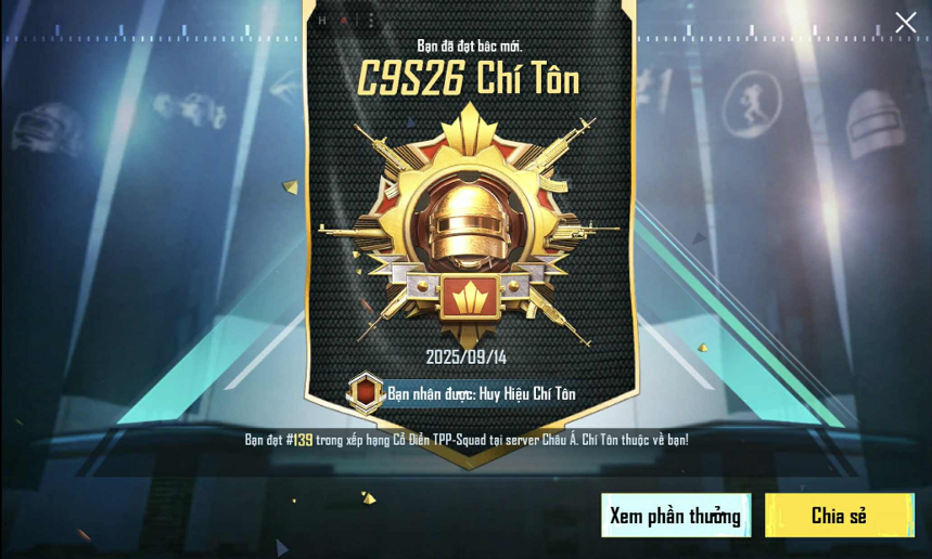 Trong thế giới PUBG Mobile, Royal Rank Tối Thượng là thử thách khắc nghiệt, Yeyeye đã đạt đến bậc rank danh giá này – minh chứng rõ ràng nhất cho kỹ năng, phản xạ và tư duy chiến thuật Pro-Player.